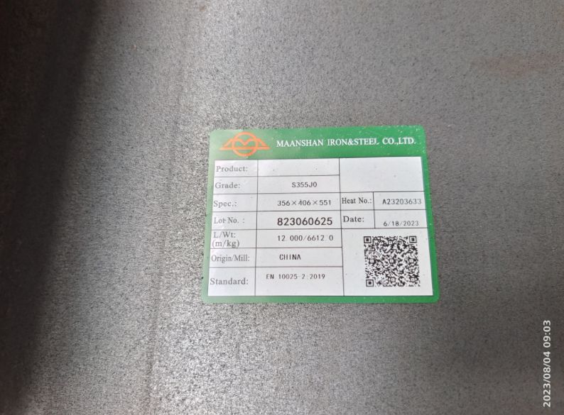 歐標H型鋼UC356*406*551,型號455.6X418.5X42.1X67.5,歐標H型鋼表示方法,腹板高度455.6mm,翼緣板寬度418.5mm,腹板厚度42.1mm,上下翼緣板厚度67.5毫米。每米重量是551公斤。歐標H型鋼產地:馬鋼、萊鋼、津西,可接受鋸床下料加工。